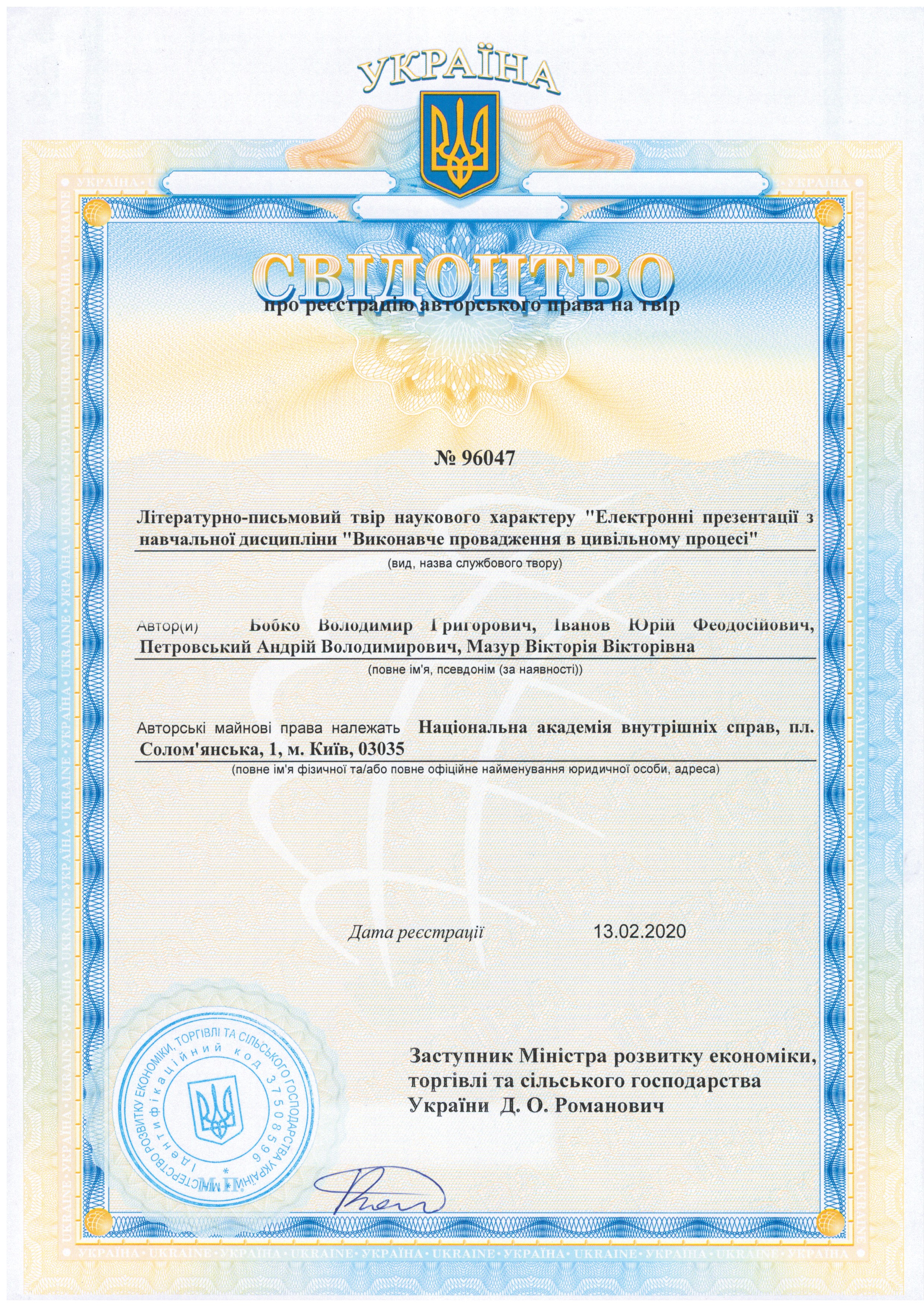 Свідоцтва на службові твори