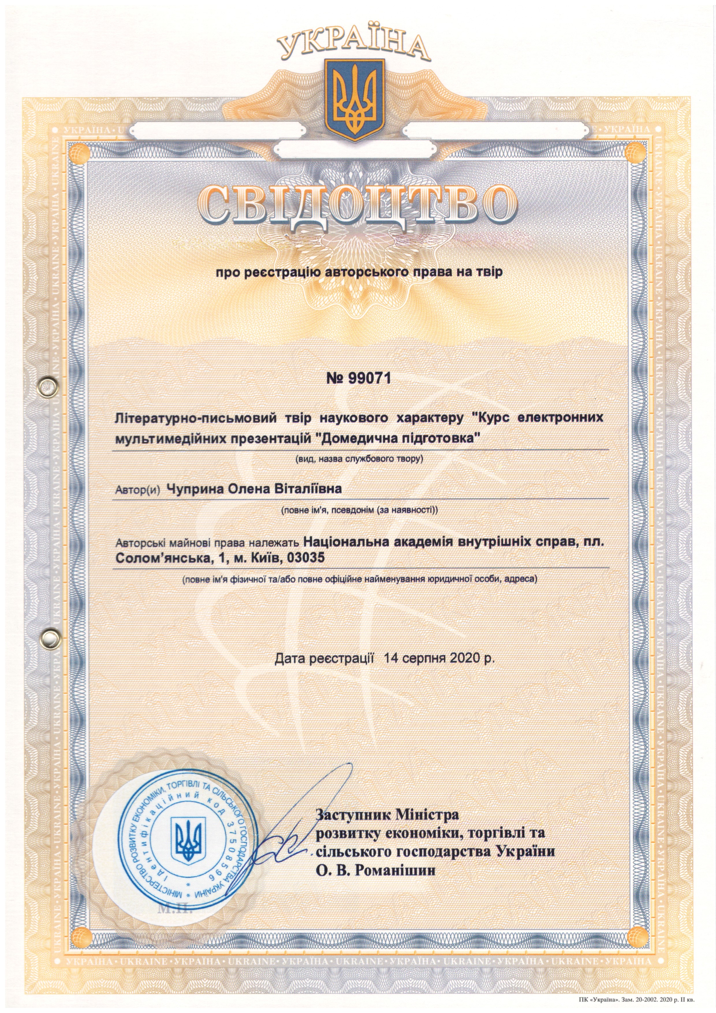 Літературно-письмовий твір наукового характеру «Курс електронних мультимедійних презентацій «Домедична підготовка»