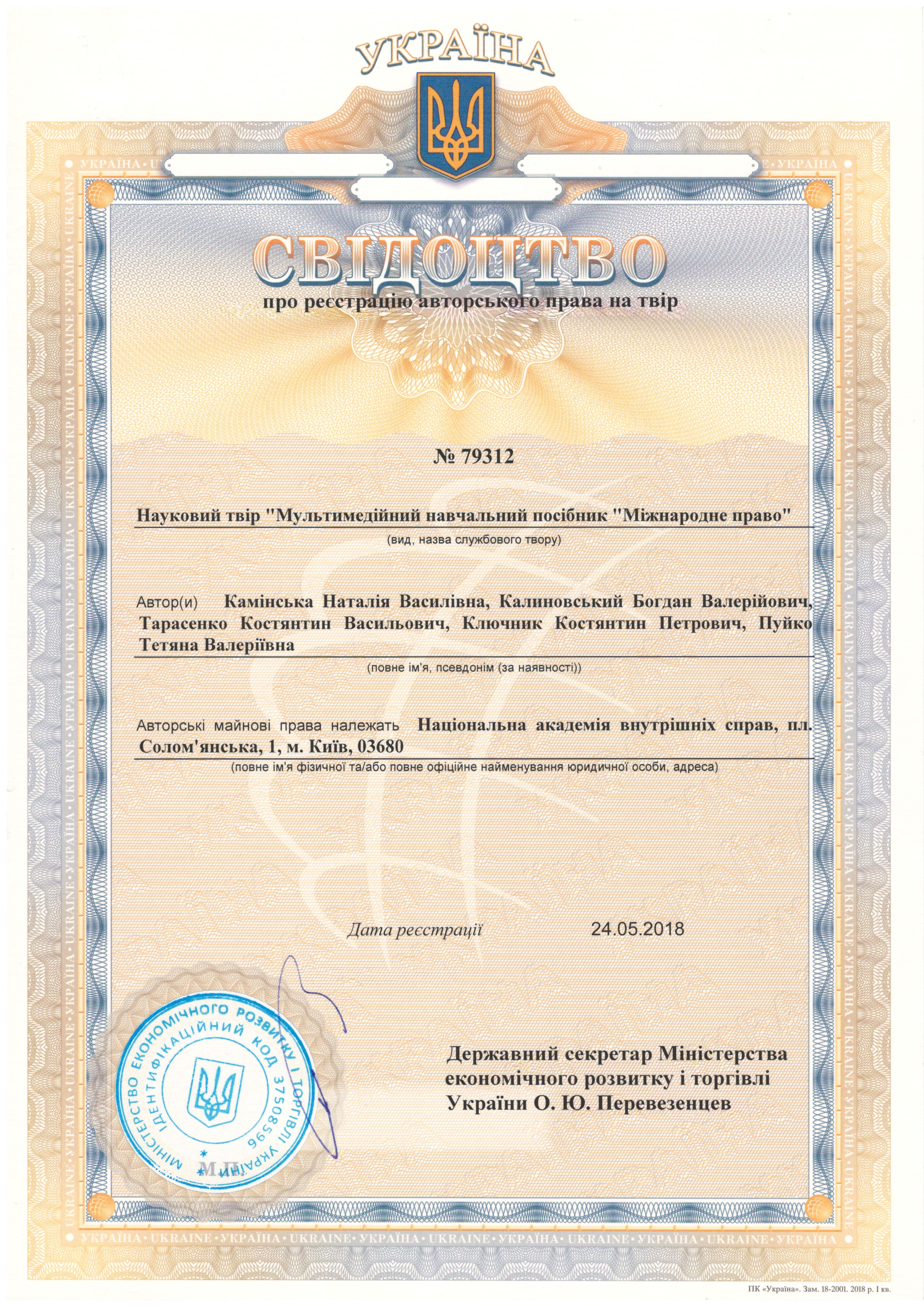 Науковий твір «Мультимедійний навчальний посібник «Міжнародне право»»