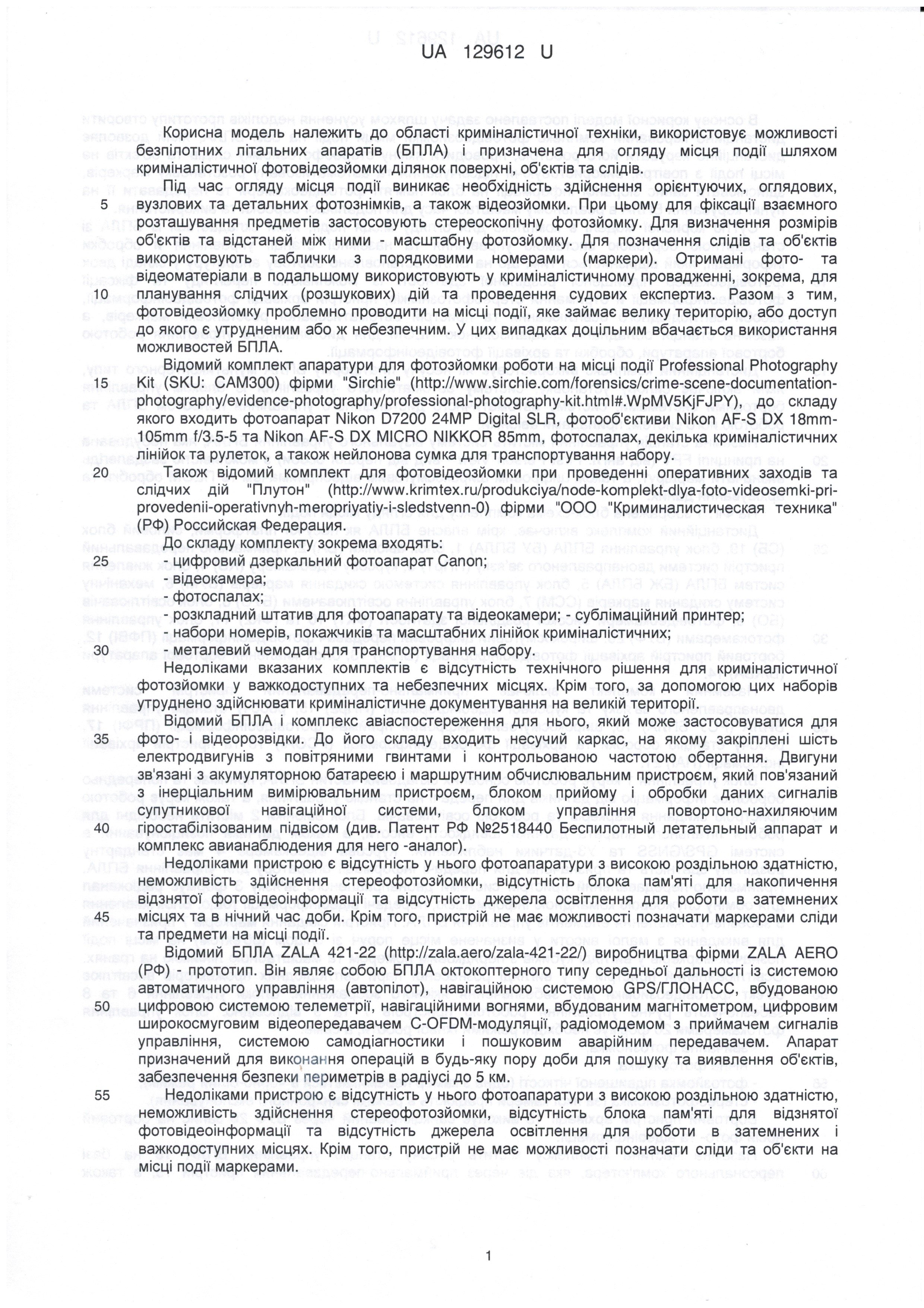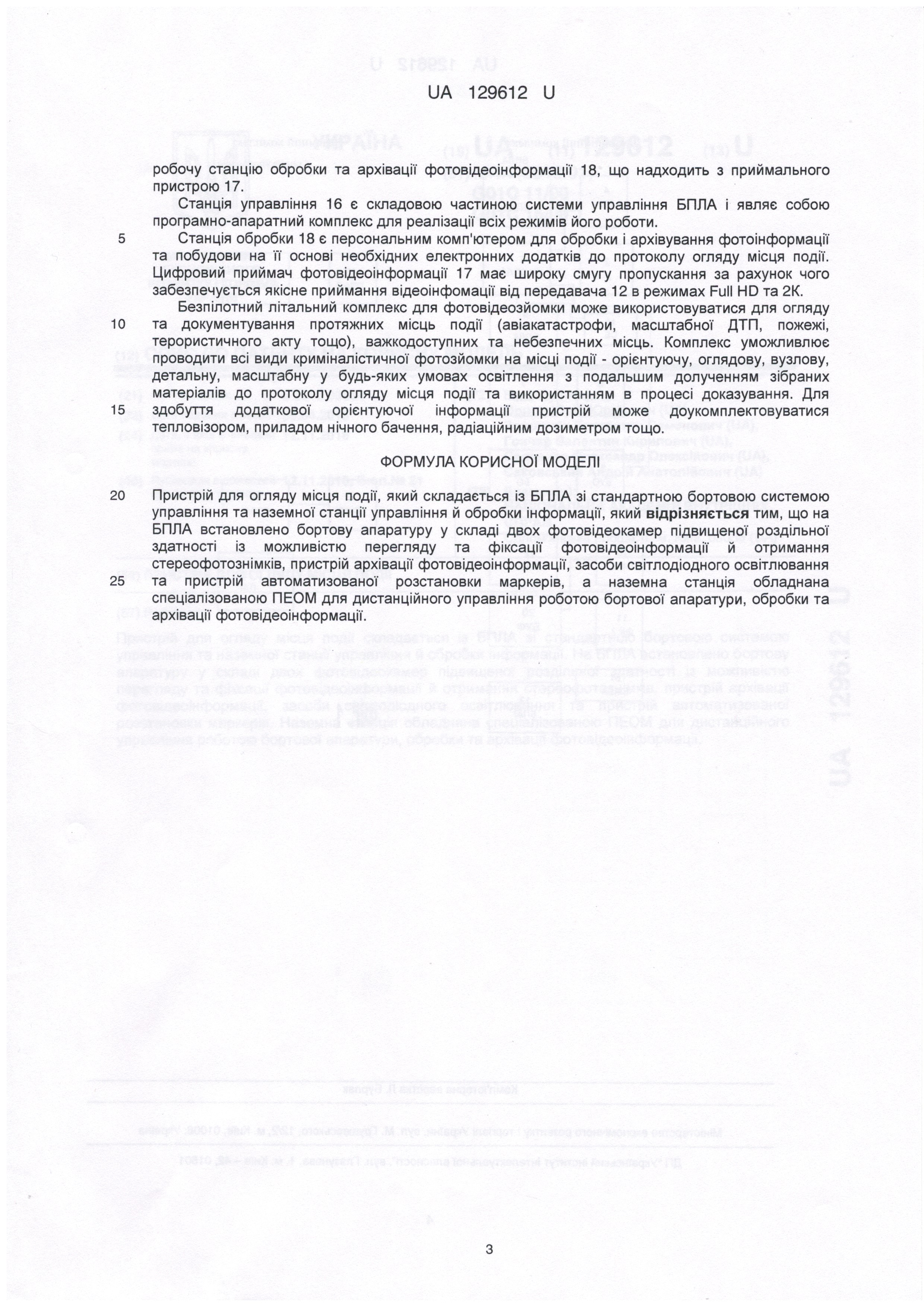 Патент України на корисну модель "Пристрій для огляду місця події" № 129612