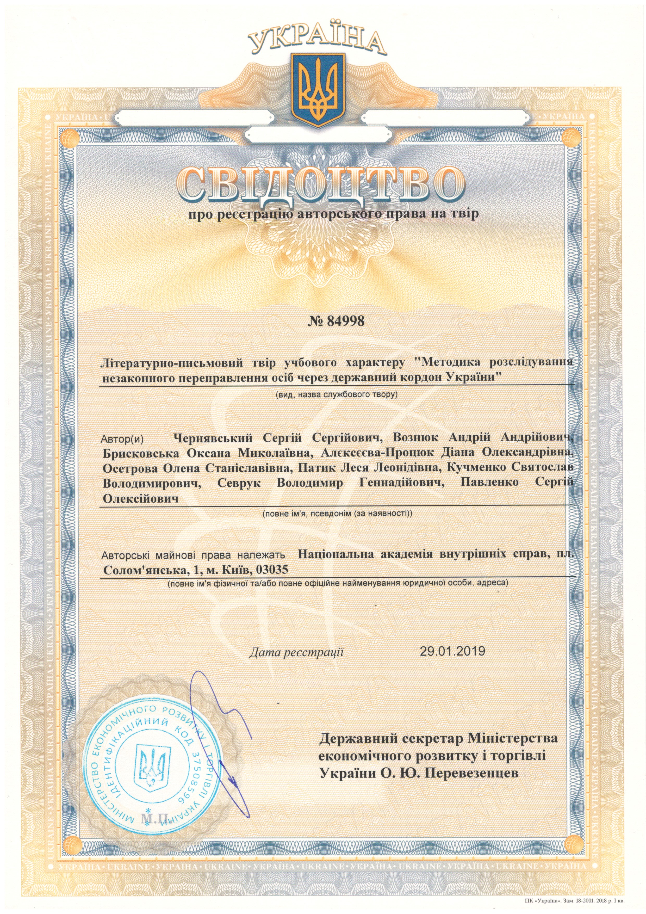 Літературно-письмовий твір учбового характеру «Методика розслідування незаконного переправлення осіб через державний кордон України»