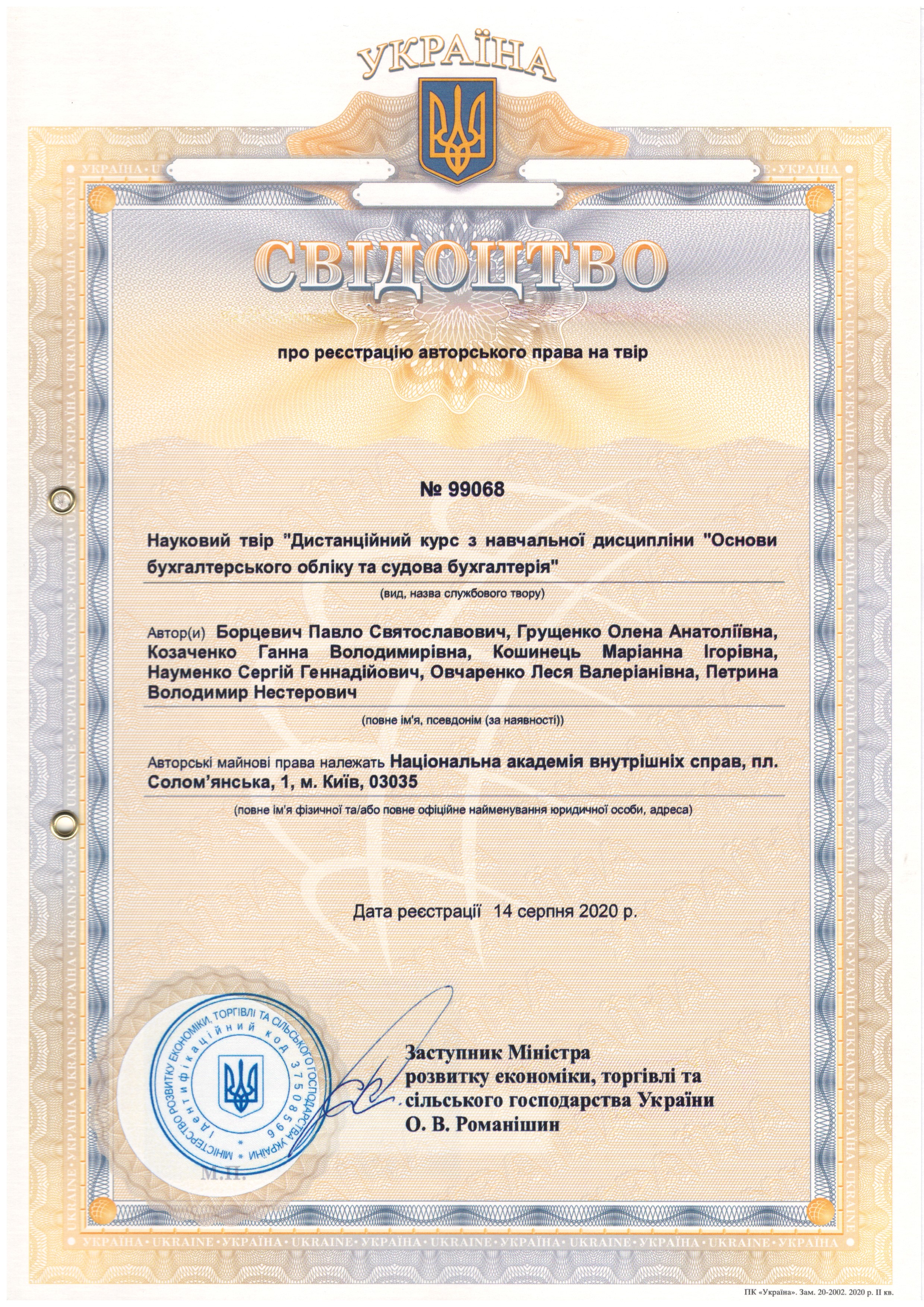 Науковий твір «Дистанційний курс з навчальної дисципліни «Основи бухгалтерського обліку та судова бухгалтерія»