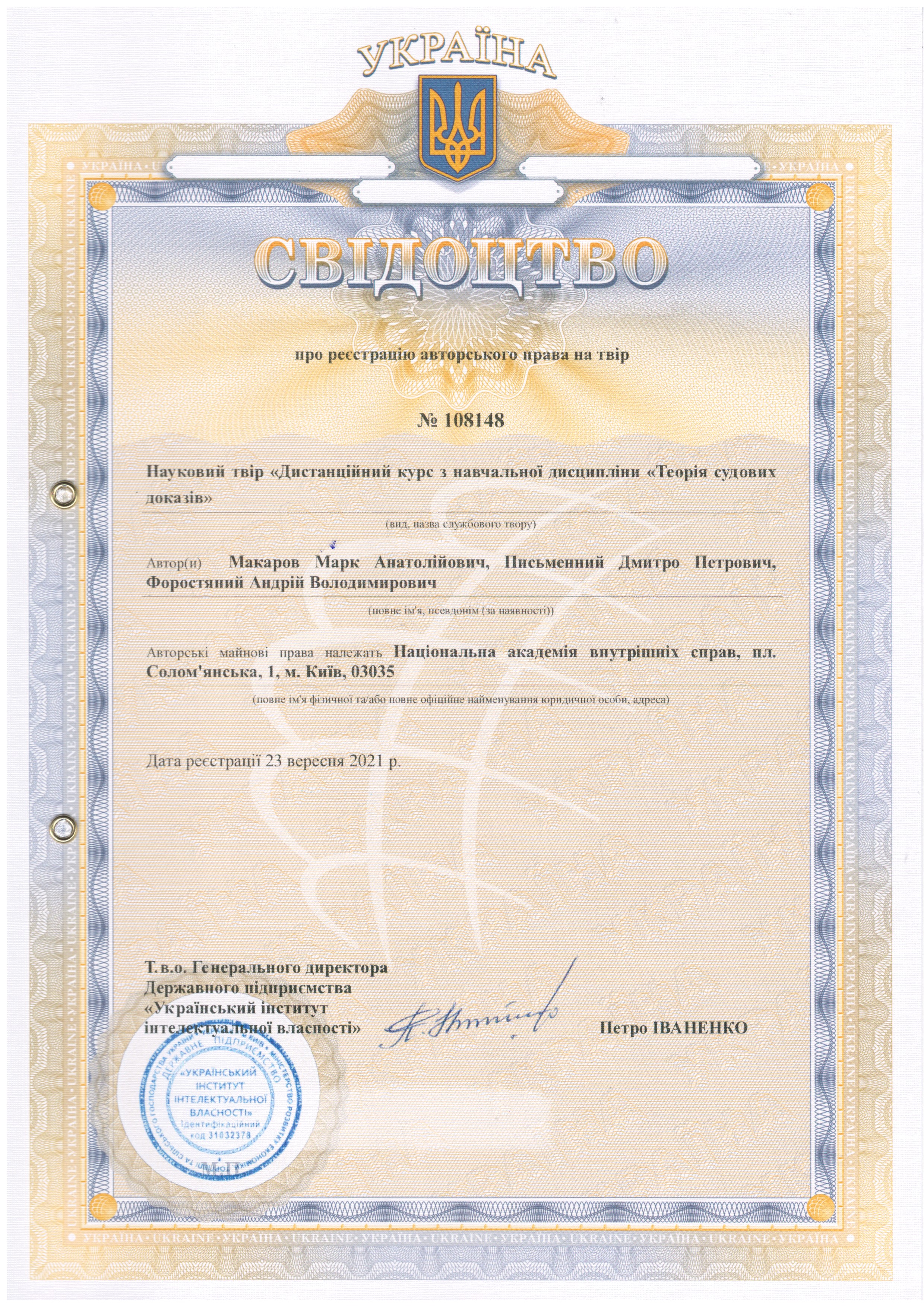 «Дистанційний курс з навчальної дисципліни «Теорія судових доказів»