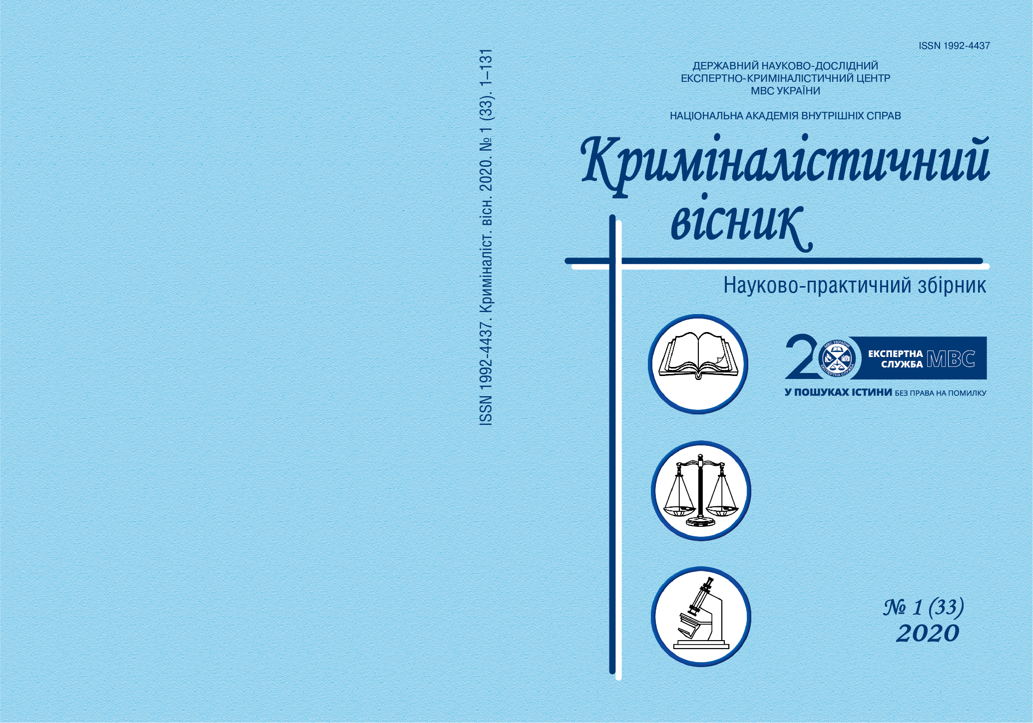 Криміналістичний вісник: наук.-практ. зб. / [редкол.: І. М. Охріменко (голов. ред.) та ін.]; ДНДЕКЦ МВС України; НАВС. Київ: ДНДЕКЦ МВС України, 2020. № 1 (33). 131 с.: іл.