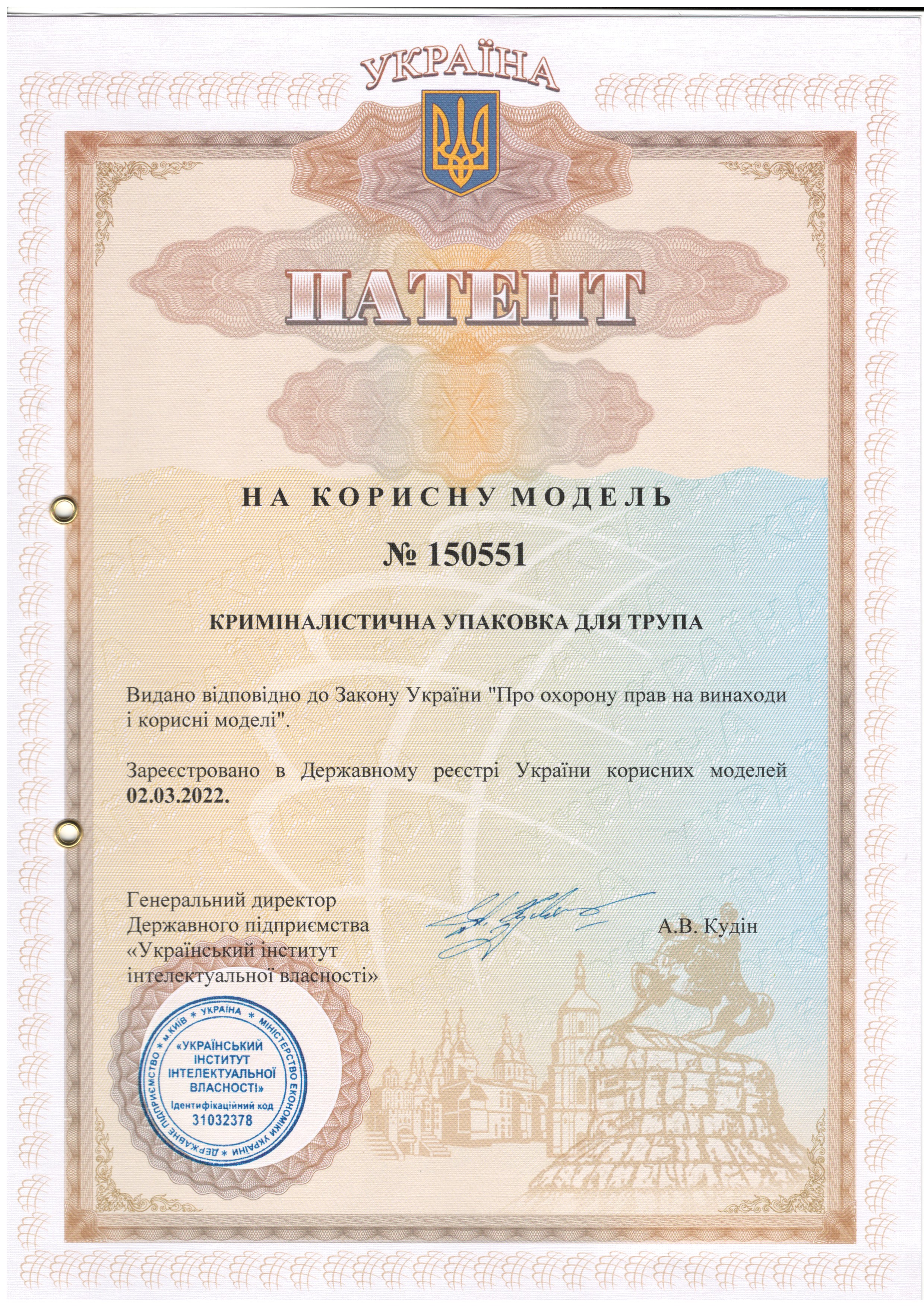 Патент України на корисну модель № 150551 Криміналістична упаковка для трупа