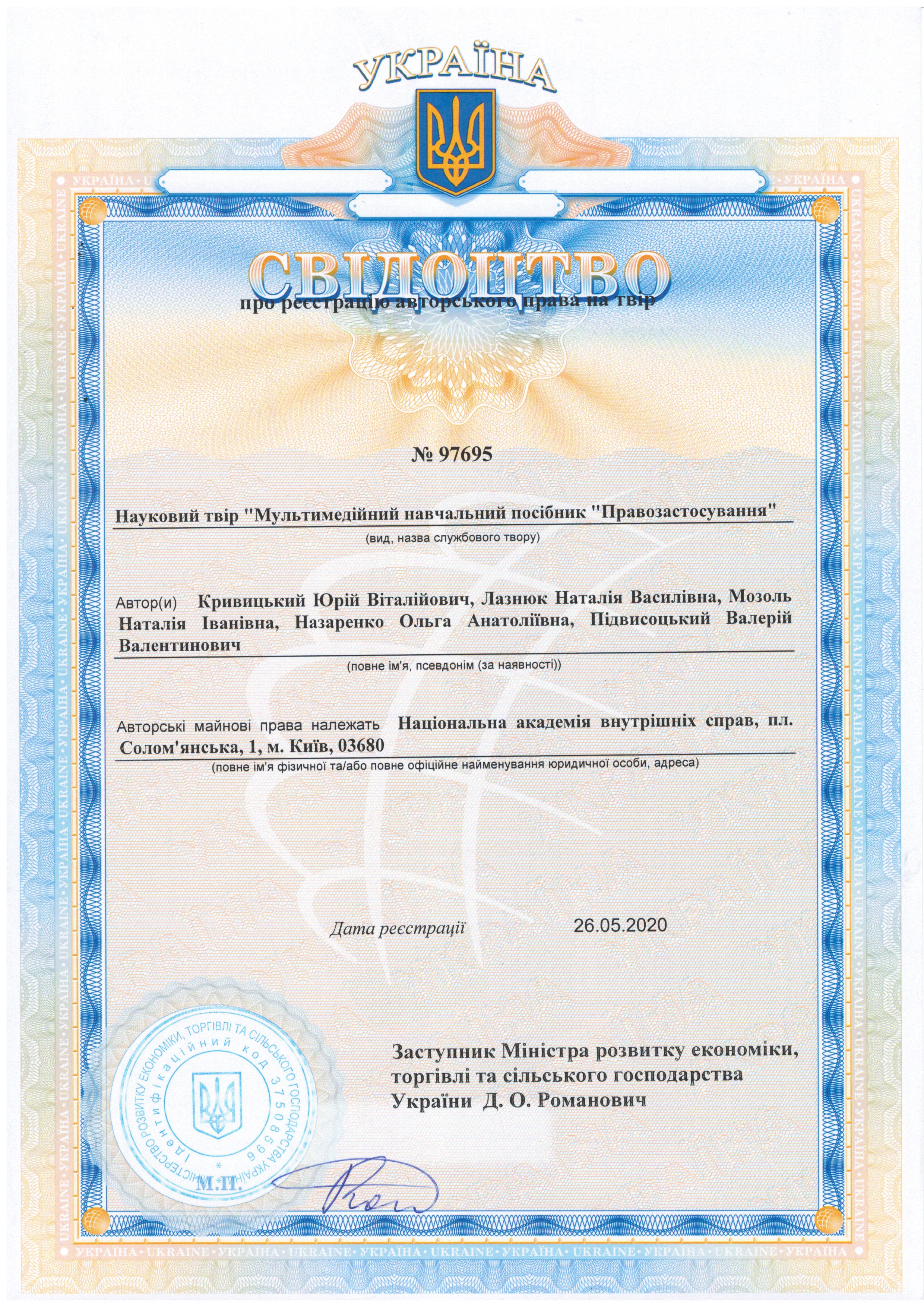 Науковий твір «Мультимедійний навчальний посібник «Правозастосування»»