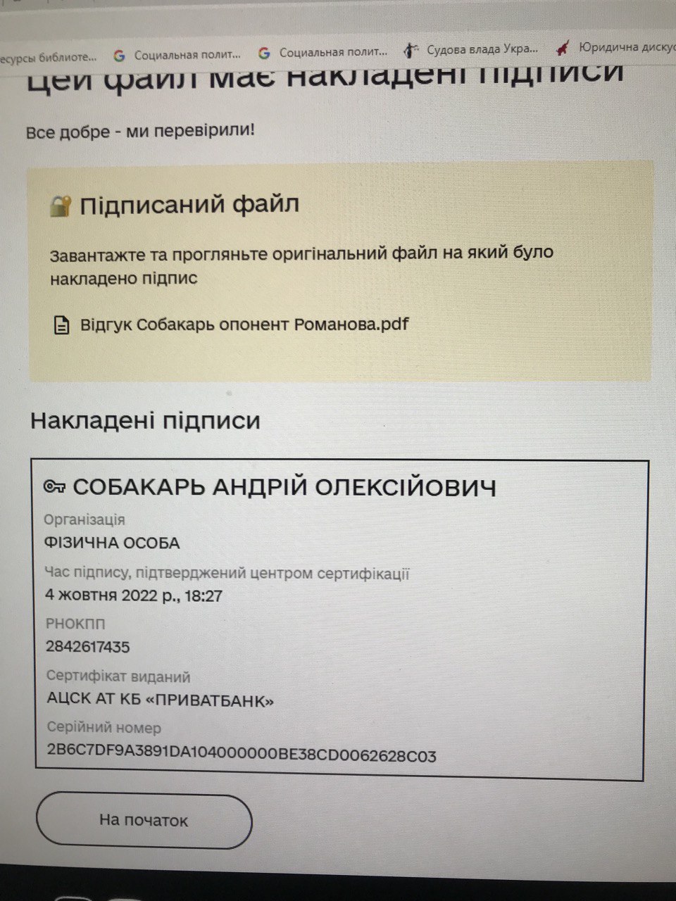 Відгуки та рецензії на дисертацію Романова Максима Юрійовича