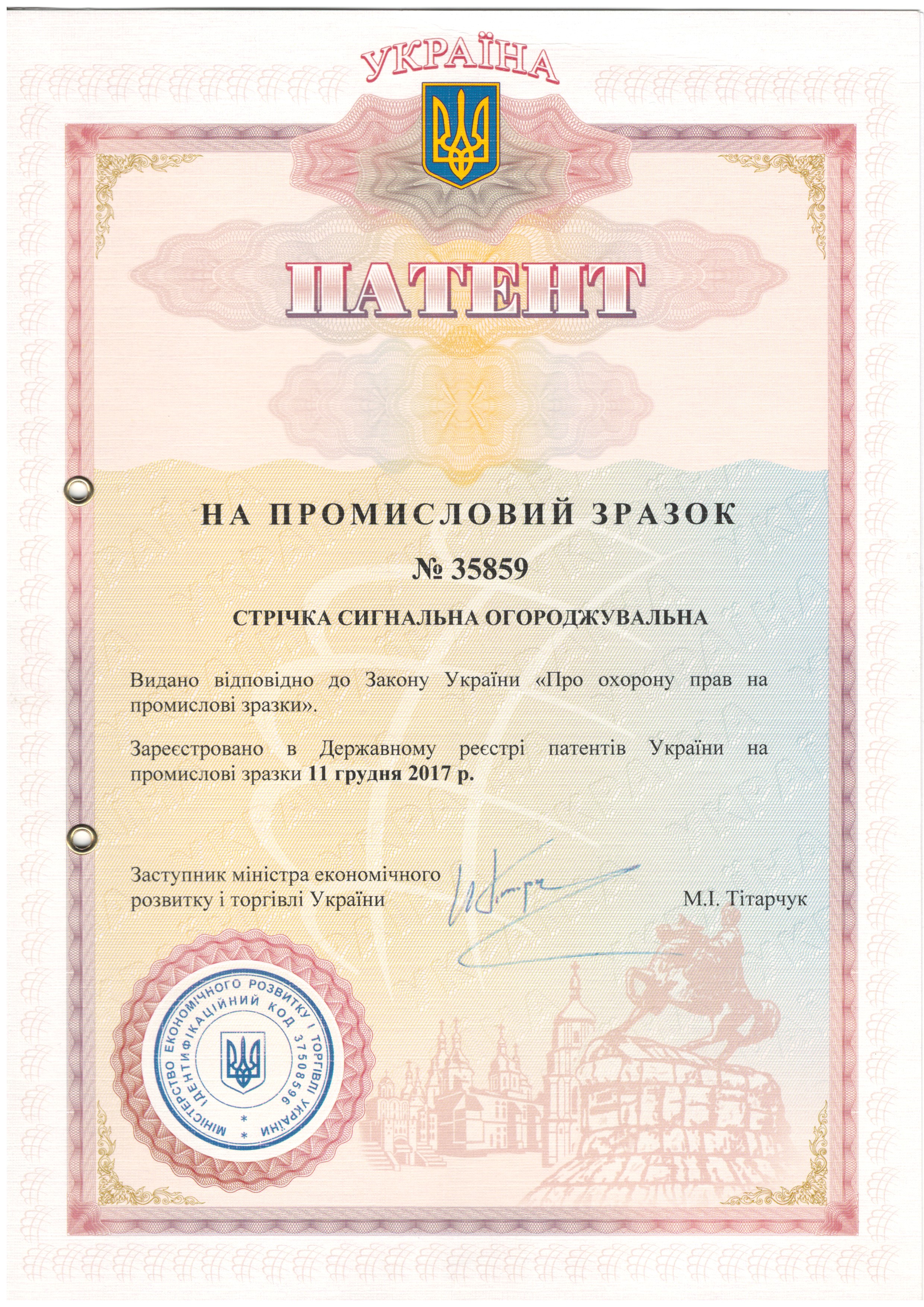Патент на промисловий зразок "Cтрічка сигнальна огороджувальна" № 35859