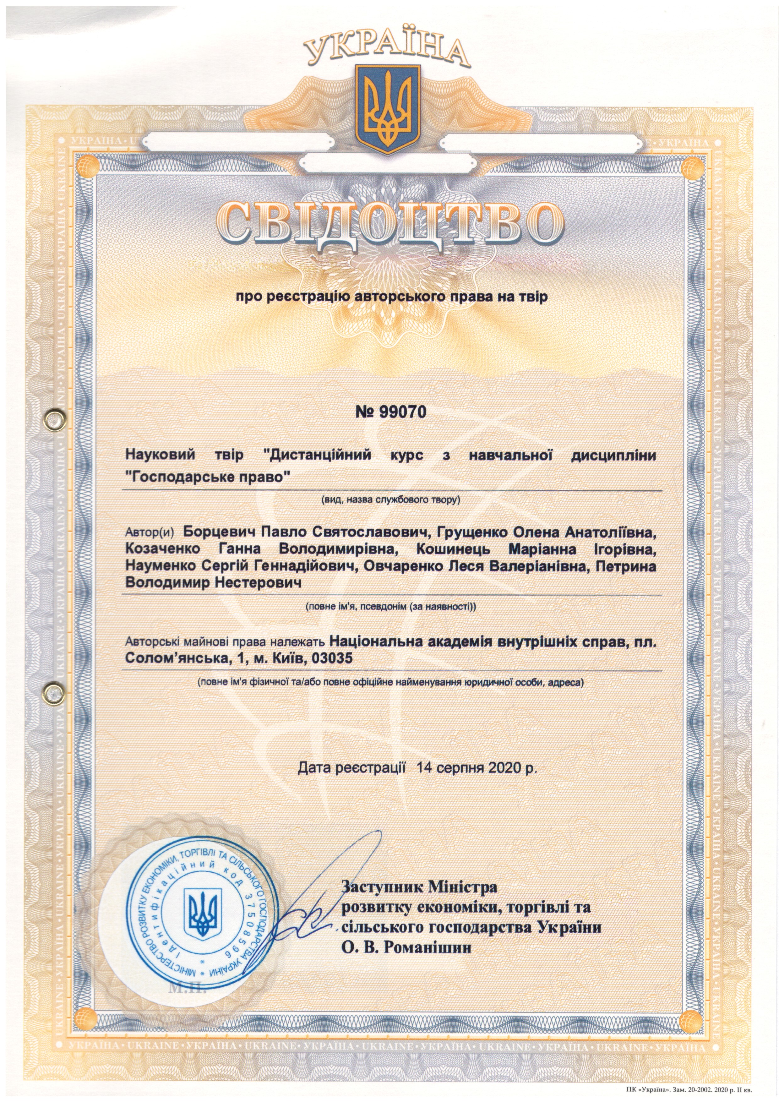 Науковий твір «Дистанційний курс з навчальної дисципліни «Господарське право»