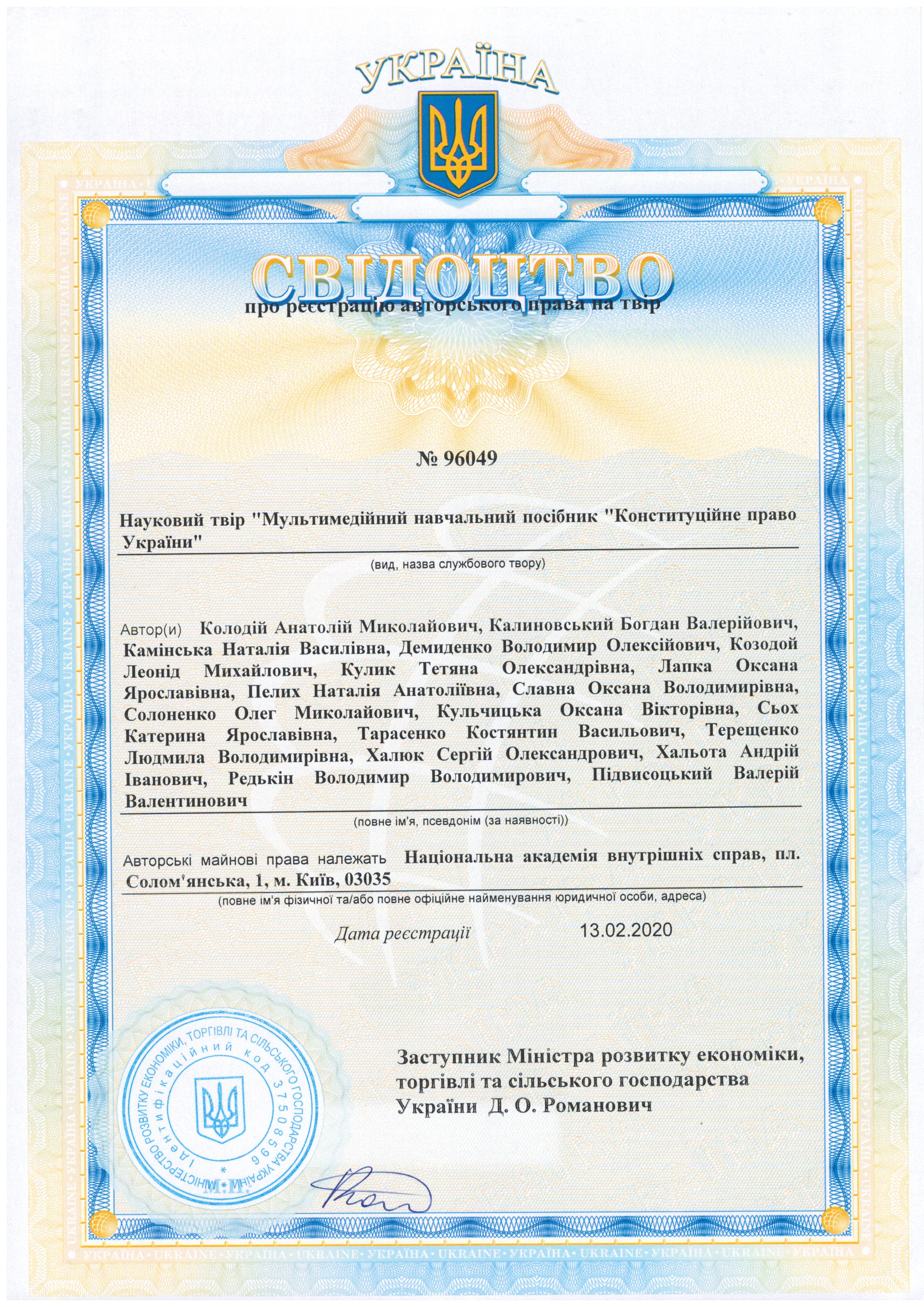 Науковий твір «Мультимедійний навчальний посібник «Конституційне право України»