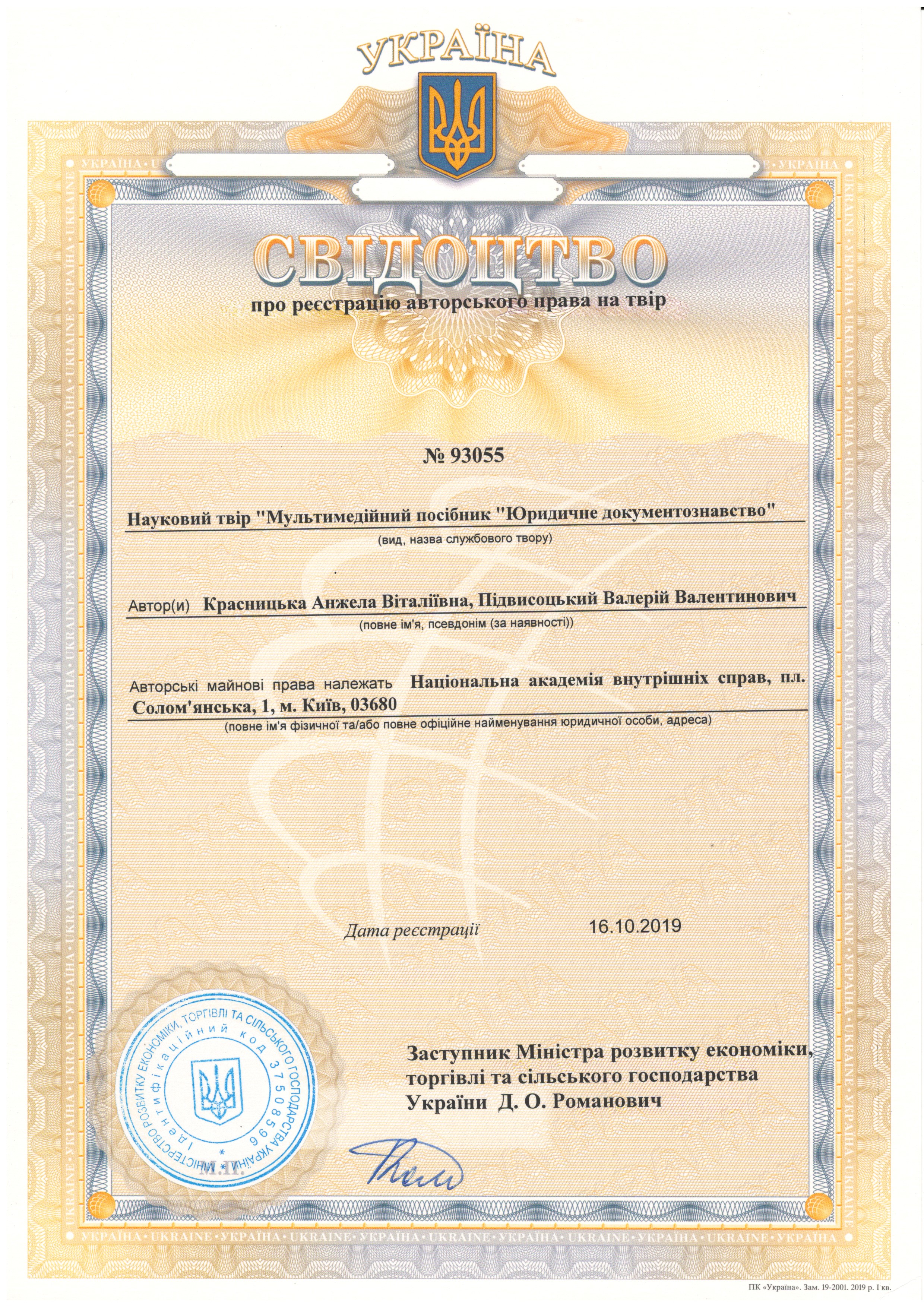 Науковий твір «Мультимедійний посібник «Юридичне документознавство»»